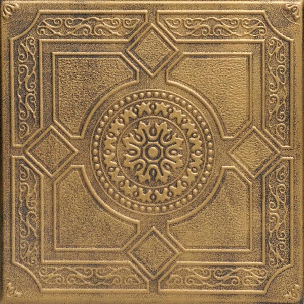 Kensington Garden Antique Brass 1.6 ft. x 1.6 ft. Decorative Foam Glue Up Ceiling Tile (21.6 sq. ft./Case)