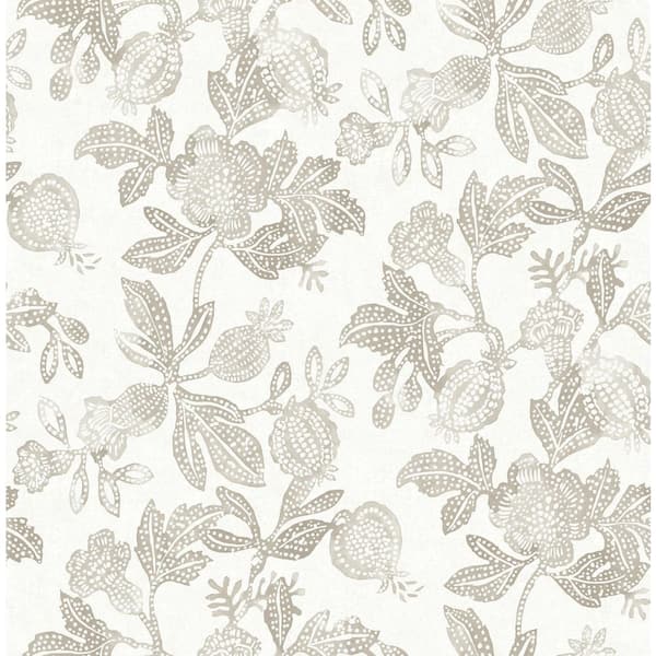Beach Rose Grey Neutral Floral Fruits Wallpaper Sample