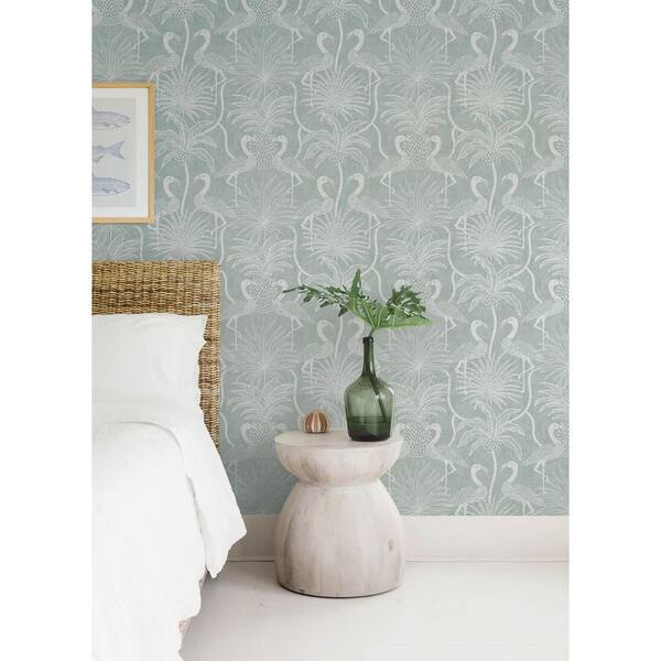 Biscayne Turquoise Blue Flamingo Beach Wallpaper Sample