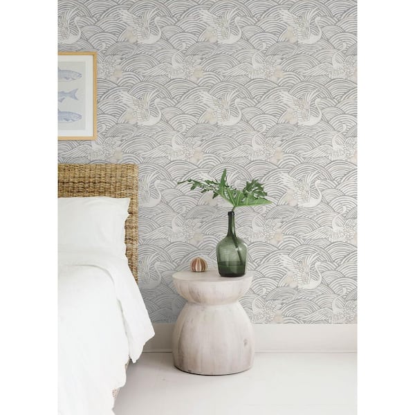 Egret Slate Grey Tidal Dance Wallpaper Sample