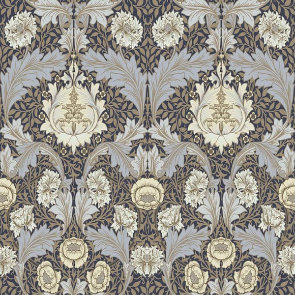 Myrtle Blue Floral Ogee Wallpaper Sample