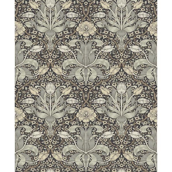 Spring Thicket Blue Tulip Damask Wallpaper Sample