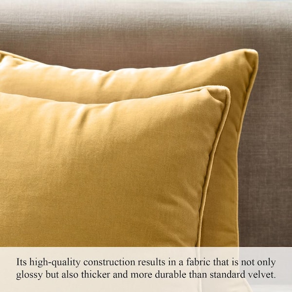 A1HC Mustard Yellow Velvet Decorative Pillow Cover Pack of 2 24 in. x 24 in. Hidden YKK Zipper, Throw Pillow Covers Only