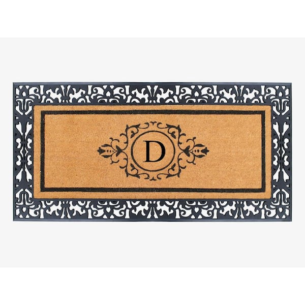 A1HC Paisley Black 30 in. x 60" Rubber and Coir Monogrammed D Durable Outdoor Entrance Door Mat