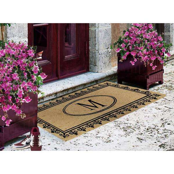 A1HC Richmond 24 in. x 57 in. Monogrammed M Anti Shred Treated Non Slip Entry Bleached Double Door Mat
