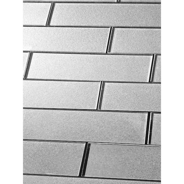 Forever Silver 3 in. x 12 in. Glossy Glass Subway Backsplash Wall Tile (14 sq. ft./Case)