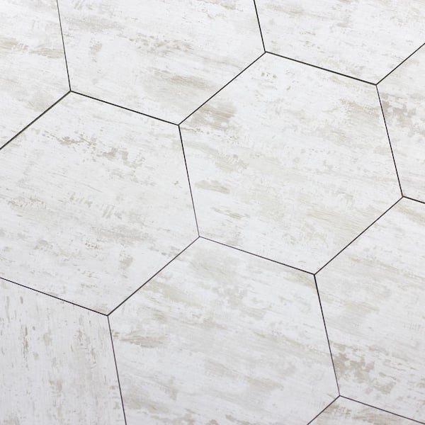 French Country Birch White 8 in. x 8 in. Hexagon Wood Look Glass Wall Tile (8 sq. ft./Case)