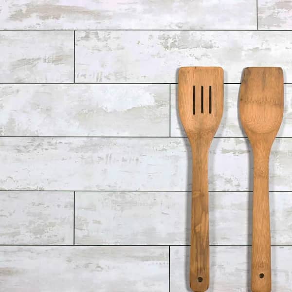 French Country Style White 3 in. x 16 in. Wood Look Glass Subway Wall Tile (20 sq.ft./Case)