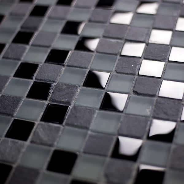 Mineral Gray Black 12 in. x 12 in. Square Glass and Stone Mosaic Wall Tile (1 sq.ft/Each)