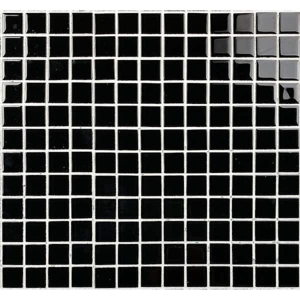 Modern Design Glossy Black Square Mosaic 12 in. x 12 in. Glass Wall Floor and Pool Tile (4 sq. ft./Case)