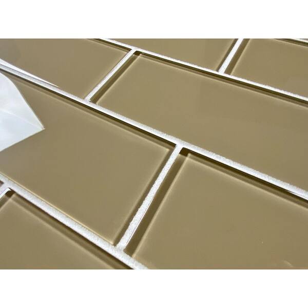 Modern Olive Brown 3 in. x 12 in. Glossy Glass Subway Wall Tile (1.5 sq.ft./Each)