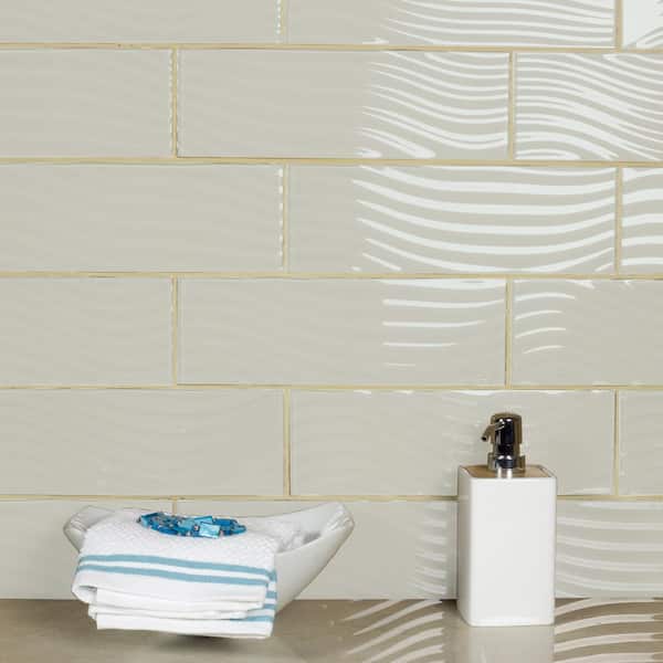Pacific Cream Beige 4 in. x 12 in. Glossy Textured Glass Subway Wall Tile (11 sq. ft./Case)