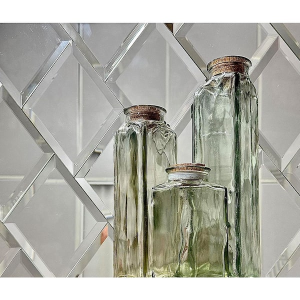 Reflections Silver Beveled Diamond 6" x 8" Glass Mirror Peel & Stick DecoTile (6-Pc/Pack)