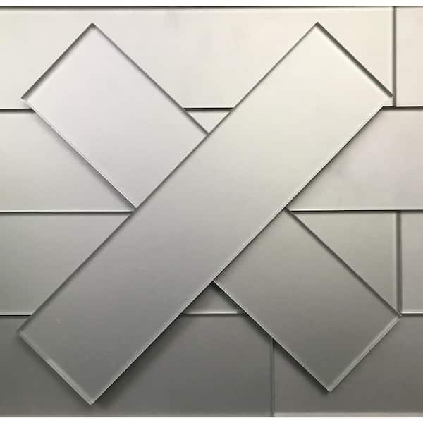 Transitional Design Matte Silver Subway 3 in. x 12 in. Glass Decorative Wall Tile (14 sq. ft./Case)