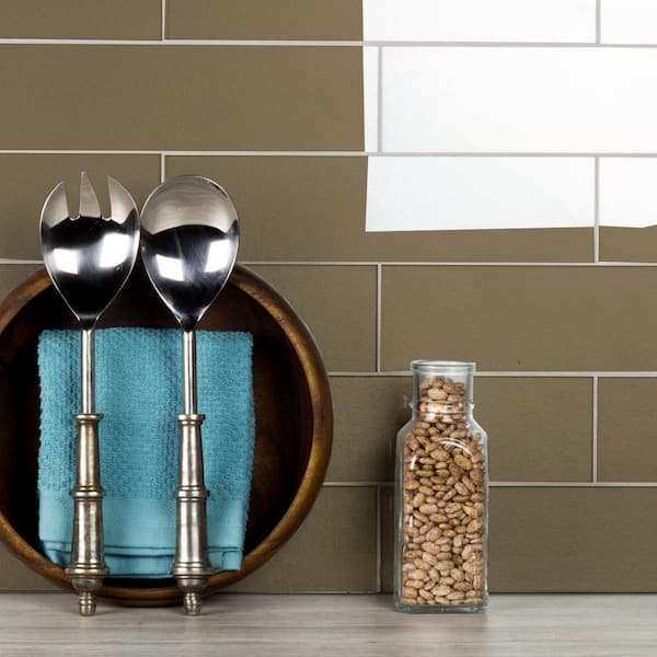 Transitional Design Style Bronze Subway 3 in. x 12 in. Glass Decorative Backsplash Tile (1 sq. ft./Case)