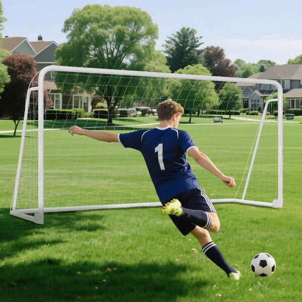 12 ft. x 6 ft. Soccer Goal for Backyard Weatherproof Foldable Steel Soccer Goal in White with Training Target and 6-Cone