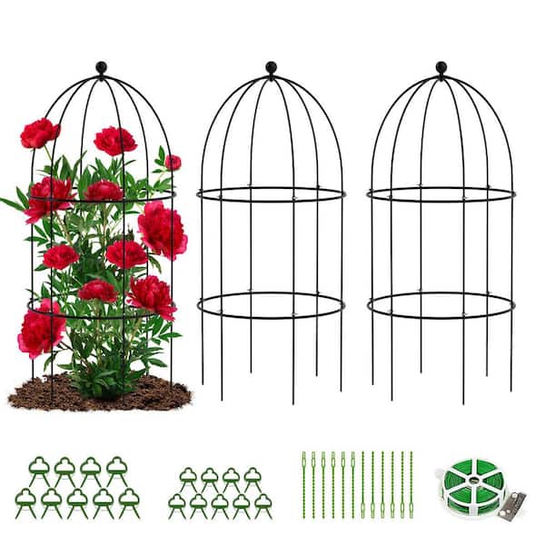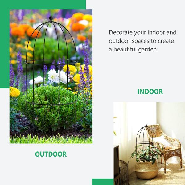 Birdcage Style Plant Support 31.5 in. Sturdy Grow Through Steel Trellis, Black