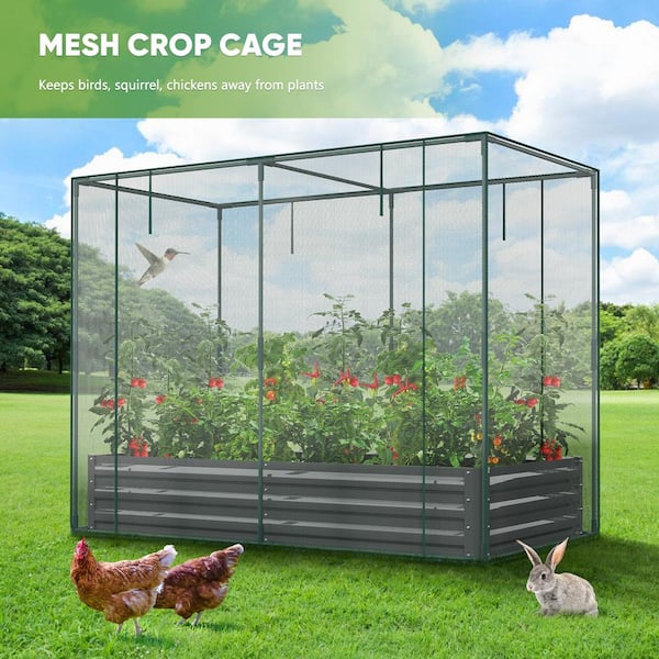 Galvanized Raised Garden Bed Kit 71 in. x 35 in. x 59 in. Metal Planter Box with Crop Cage Anti-Bird Netting Mesh Cover