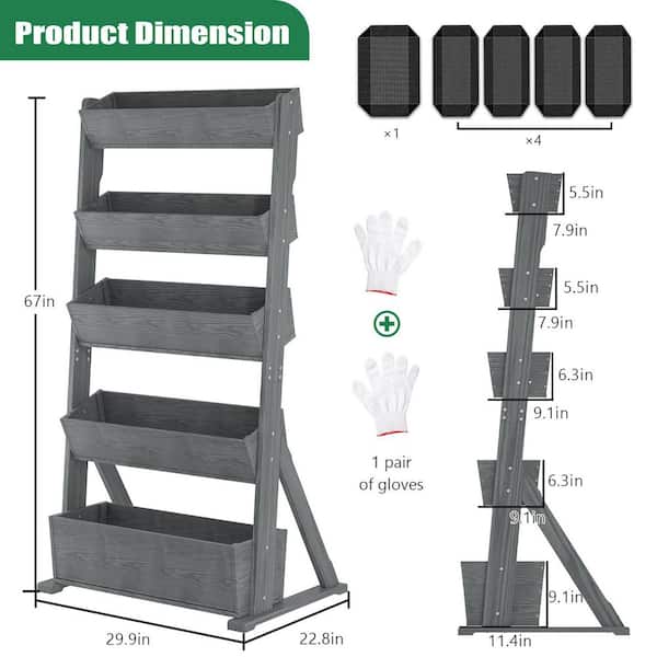 Vertical Wooden Raised Garden Bed 5-Tier Wood Garden Freestanding Plant Stand Flower Rack Wooden Planter Box Gray