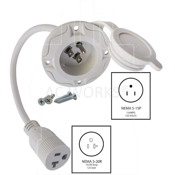 1.5 ft. 12/3 15 Amp 125-Volt NEMA 5-15P Flanged Power Input Inlet Extension Cord with Cover