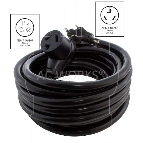 10 ft. STW 10/3 NEMA 10-30 3-Prong 30 Amp Heavy Duty Thick Dryer Extension Cord