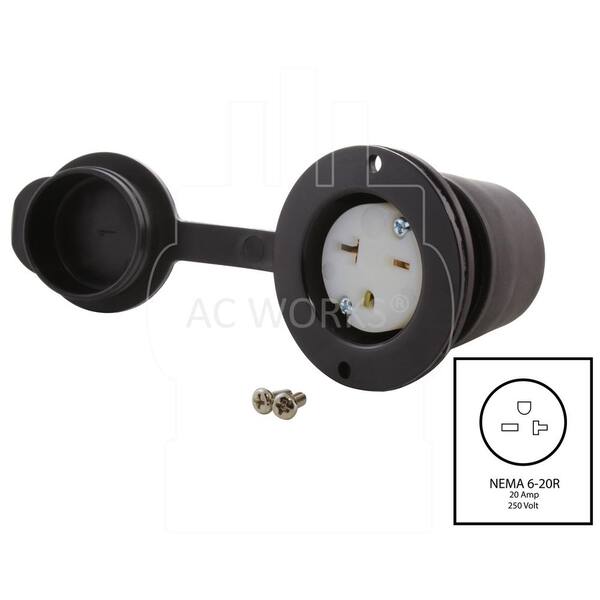 20 Amp 250-Volt NEMA 6-20R Flanged Mounting HVAC/ Power Tools Outlet Receptacle with Cover