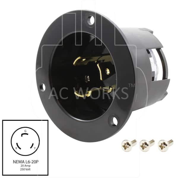 20 Amp Locking 3-Prong 250-Volt NEMA L6-20P Flanged Power Input Inlet