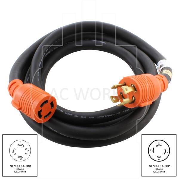 25 ft. 10/4 Soow Nema L14-30 125-Volt/250-Volt 30 Amp Generator Rubber Extension Cord