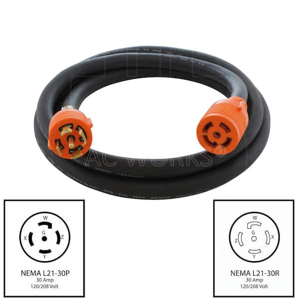25 ft. SOOW 10/5 NEMA L21-30 30 Amp 3-Phase 120/208V Industrial Rubber Extension Cord