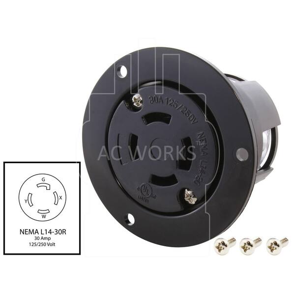 30 Amp 125/250-Volt NEMA L14-30R Flanged Mounting Locking Industrial Grade Outlet Receptacle