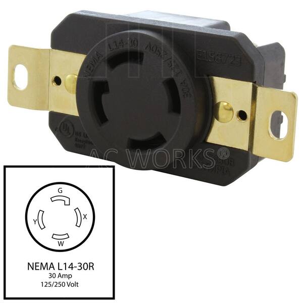 30-Amp 125/250-Volt NEMA L14-30R Flush Mounting Locking Industrial Grade Receptacle