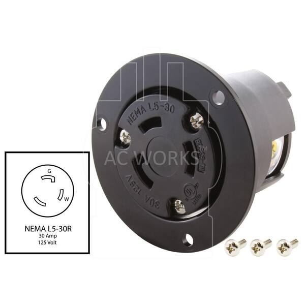 30-Amp 125-Volt NEMA L5-30R Flanged Mounting Locking Industrial Grade SIngle Outlet Receptacle