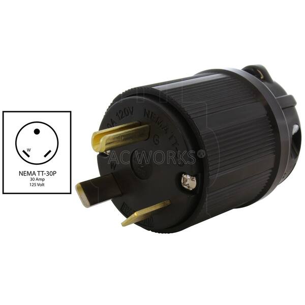 30 Amp 3-Prong RV Travel Trailer NEMA TT-30P Straight-Style Assembly Replacement Plug