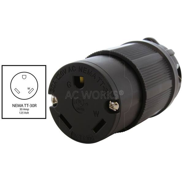 30 Amp RV Travel Trailer NEMA TT-30R Straight-Style Replacement Female Connector