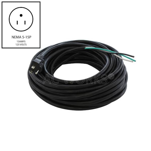 50 ft. 14/3 3-Prong 15A NEMA 5-15P U.S Indoor/Outdoor Cord in Black With Stripped End Replacement Cable