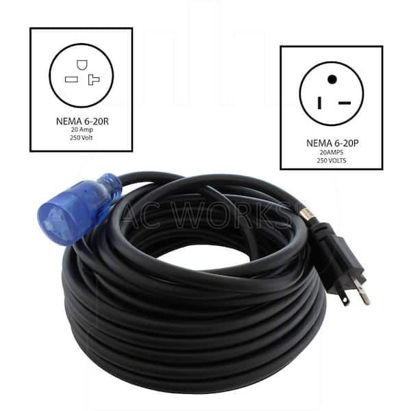 50 ft. 20 Amp 250 Volt SJTW 12/3 NEMA 6-20 Extension Cord with Lighted End
