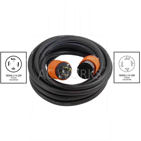 50 ft. Soow 12/4 Nema L14-20 125-Volt/250-Volt 20 Amp Generator Rubber Extension Cord