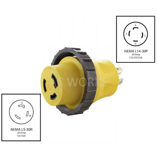 AC Connectors RV Marine Generator Adapter 30 Amp 4-Prong Generator Plug to 30 Amp RV/Marine Detachable Inlet