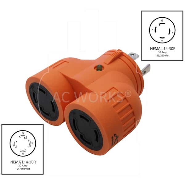 Adapter L14-30P 30 Amp 4-Prong Plug to Two 30 Amp L14-30R 4-Prong Connectors