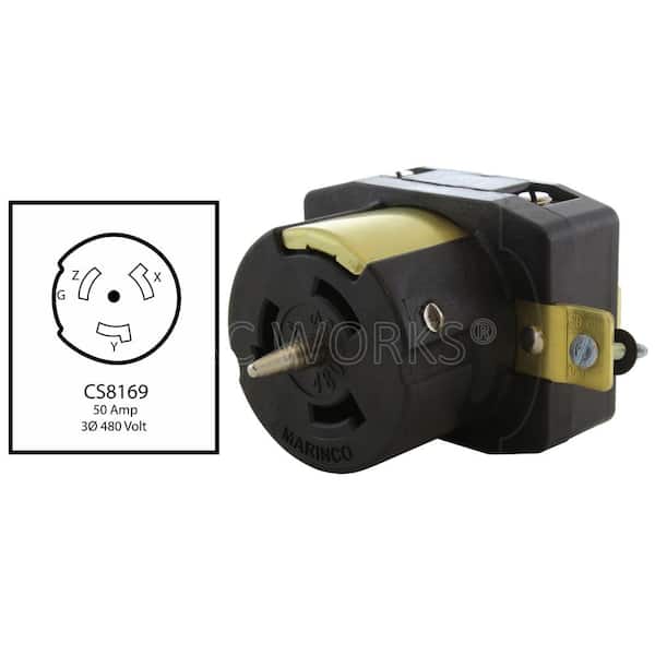 • CS8169: 50a, 480v locking outlet with 3-pole, 4-wire system