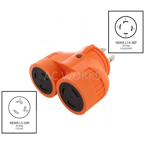 Generator V-Duo Outlet Adapter L14-30P 30 Amp 4-Prong Plug to Two 30 Amp L5-30R 3-Prong Outlets