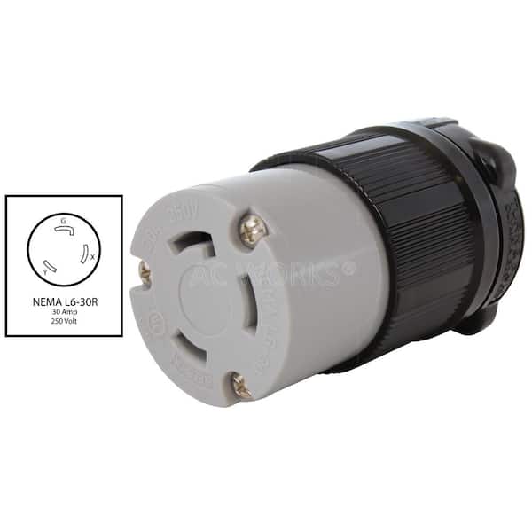 Gray NEMA L6-30R 30 Amp 250-Volt 3-Prong Locking Female Connector with UL, C-UL Approval