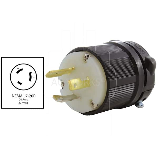 NEMA 20 Amp 277-Volt 3-Prong Locking Male Plug with UL C-UL Approval