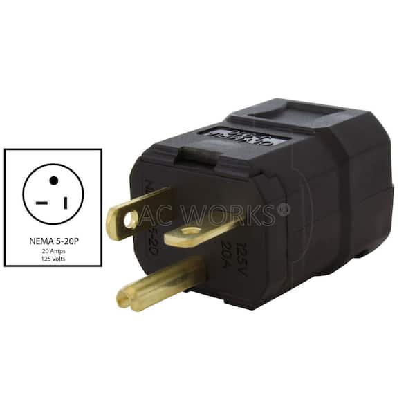 • Solid NEMA 5-20p 20a, 125v straight-blade male plug