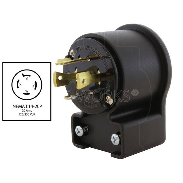 NEMA L14-20P 20 Amp 125-Volt/250-Volt 4-Prong 4-Angles Locking Male Plug With UL, C-UL Approval