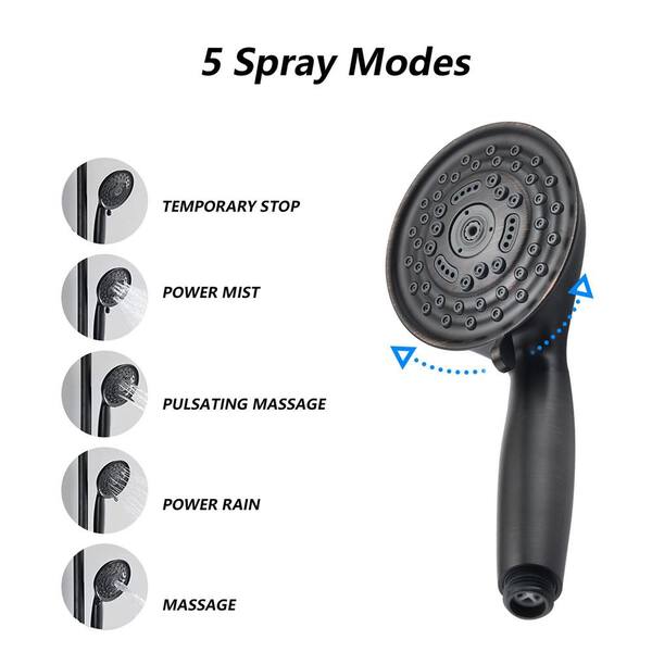 ACAD 5-Spray Patterns 8 in. Round Wall Mount Dual Shower Heads and Adjustable Slide Bar Soap Dish in Spot Resist ORB