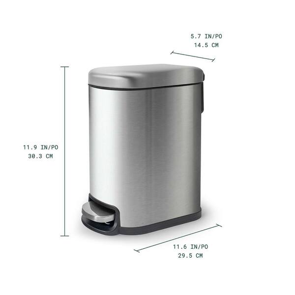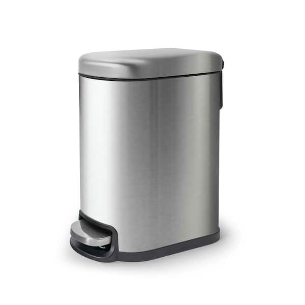 Curved Rectangular 5 L/1.3 Gal Pedal Trash Bin with Soft Close Lid in Brushed Stainless Steel