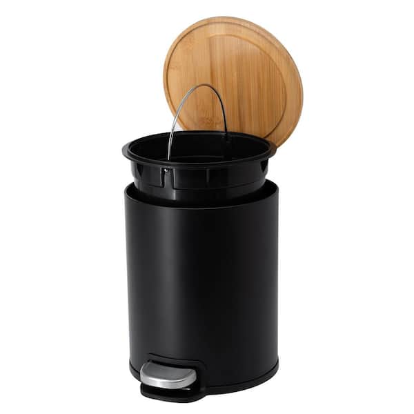 Round 5 L/1.3 Gal. Pedal Trash Bin with Bamboo Soft Close Lid in Black and Natural Bamboo