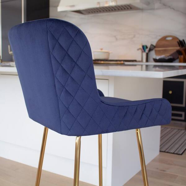 32.67 in. x 20.86 in. x 18.11 in. Navy Pagel Barstool with Gold Metal Legs (Set of 2)