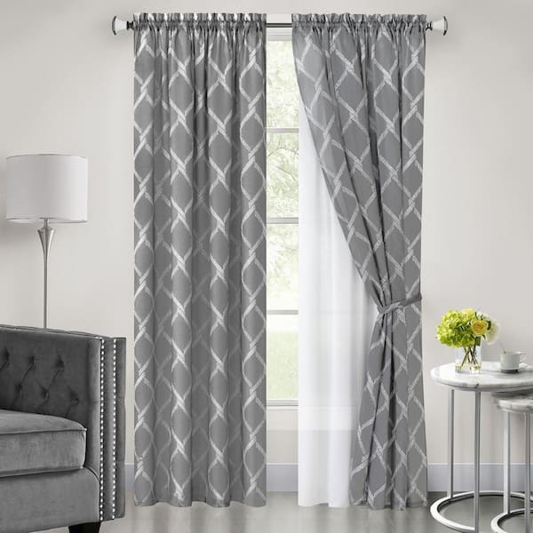 Bombay 52 in. W x 63 in. L Polyester Light Filtering Window Panel in Grey